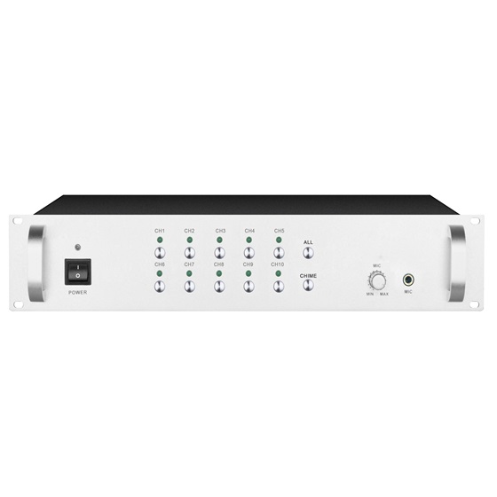 面板采用轻触式开关,设有10分区独立控制、全区控制及4音阶的钟声提示音控制,方便操作;
